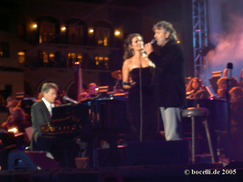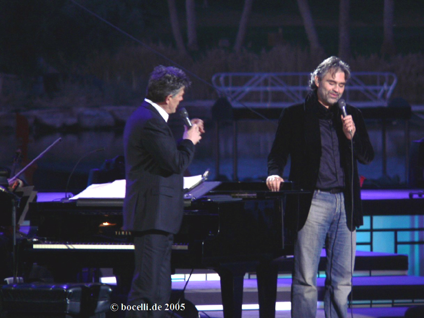 joined Andrea to sing a few lines in English of "Les
